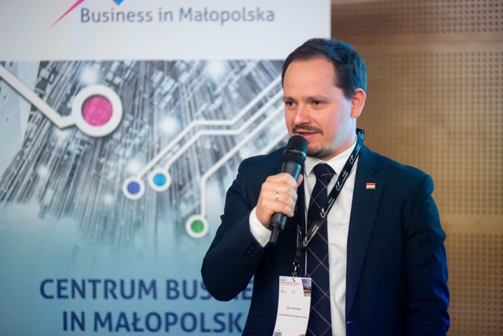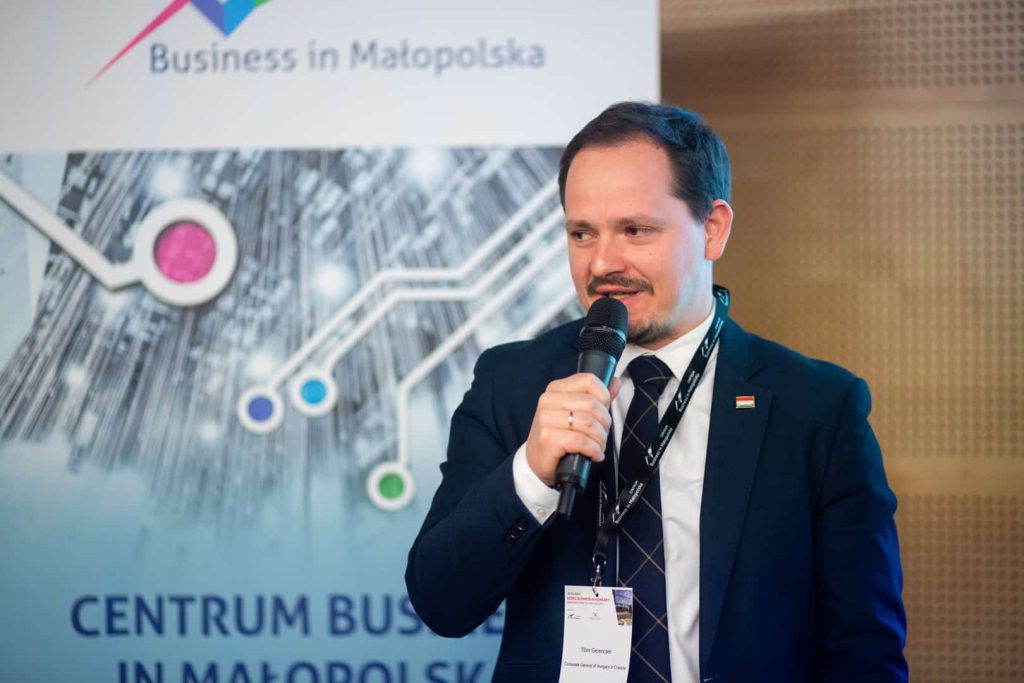 Spotkanie uroczyście rozpoczęli pan Tomasz Németh, prezes Polsko-Węgierskiej Izby Gospodarczej, pani Agnieszka Pala – manager Centrum Business in Małopolska oraz pani Anna Wiśniewski – Dyrektor Generalny Polsko-Węgierskiej Izby Gospodarczej. W krótkim wstępie opowiedzieli o działalności instytucji wspierających polsko-węgierskie stosunki gospodarcze oraz o celach wydarzenia.