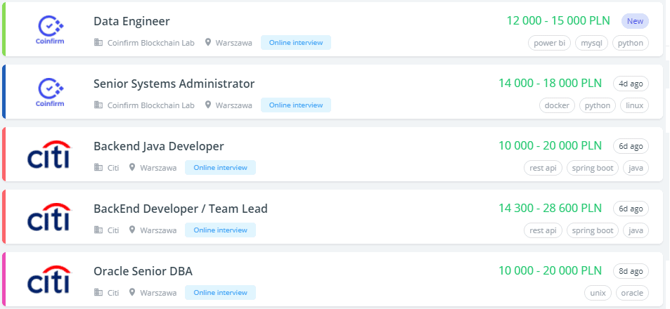 Polski rynek również poszczycić się może podobnymi praktykami. Najbardziej rozpoznawalne portale jobboardowe takie jak pracuj.pl, jooble.com, a także justjoinit.pl bardzo często zwierają informację o proponowanym wynagrodzeniu. Świat IT słynie z potrzeby poznania finansowego aspektu swojej przyszłej roli. To na tej podstawie specjaliści IT często podejmują decyzję o zmianie pracy, co szczególnie wyróżnia ich na tle innych branż. Wśród publikujących są małe start-upy czy też duże firmy. Są wśród nich między innymi GSK, Netguru, Citi i Coinfirm Blockchain Lab.