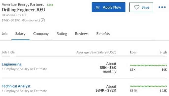 Na jednym z zagranicznych portali pracy glassdor.com przedstawia się same tego typu ogłoszenia o pracę. Oferty dotyczą głównie Stanów Zjednoczonych. Każda firma, która przez ten portal poszukuje pracowników zobowiązana jest do umieszczenia kwoty wynagrodzenia, lub przewidzianego przedziału dla danego stanowisko. Przykładem może być Enbridge, kanadyjska międzynarodowa firma zajmująca się transportem energii z siedzibą w Calgary, a także Helmerich & Payne, czyli amerykańska firma zajmująca się wierceniem kontraktów naftowych. Na tej liście znajduje się także polski KGHM poszukujący inżynierów pracujących przy procesie wydobycia i przetwórstwa miedzi w stanie Nevada.