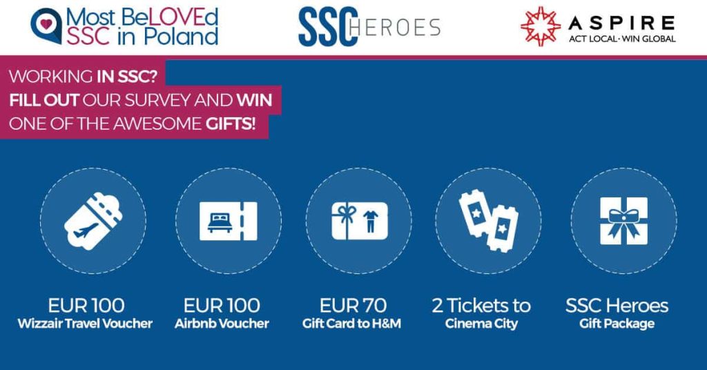 The Survey is available on https://sscheroes.pl/mostbelovedssc and it closes on January 20th. On January 25th there will be a raffle draw for employee gifts. Don’t forget: travel, accommodation, fashion and entertainment vouchers for some really awesome brands are awaiting you! We encourage YOU and YOUR company to take part in the competition and take a chance to go down in history as the Most BeLOVEd SSC!