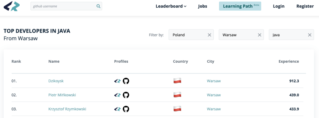 Na CodersRank można wyszukiwać profile będące na GitHubie, które w połączeniu z wtyczką OctoHR wyszukują nam adresy mailowe kandydatów plus technologię, w jakiej się specjalizują.