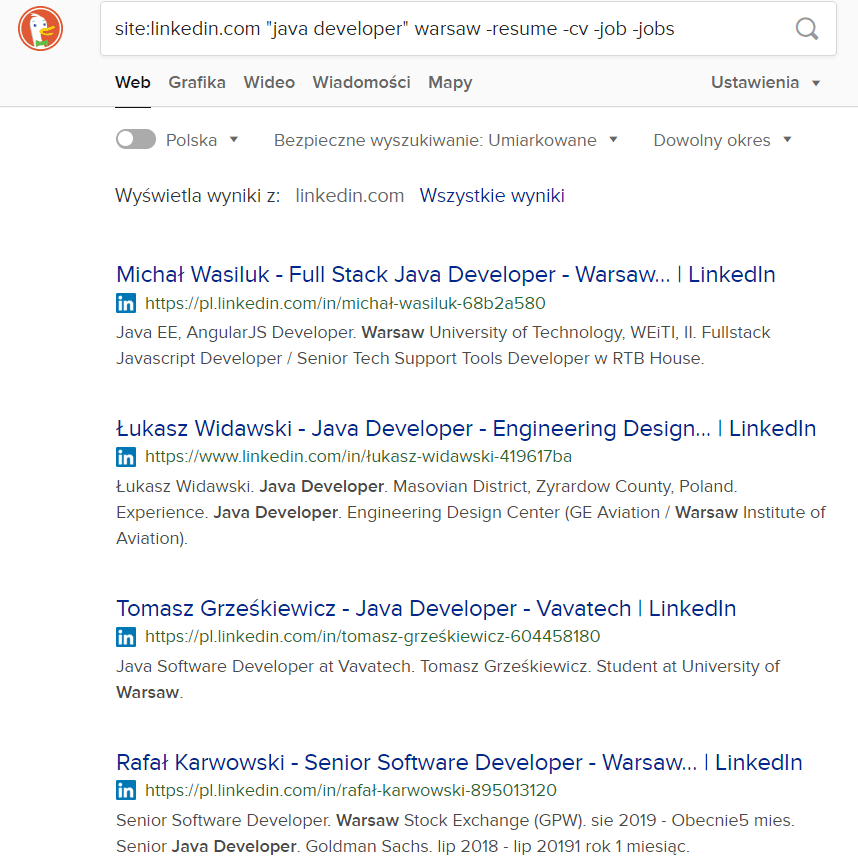 Minus jest taki, że DDG nie ma tak dobrych algorytmów jak Chrome i mimo booleanu należy sprawdzić wszystkie swoje wyniki – czy faktycznie się nam zgadzają z wytycznymi.