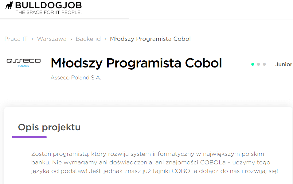 Również w Polsce pojawiają się oferty dla programistów związane z COBOL.