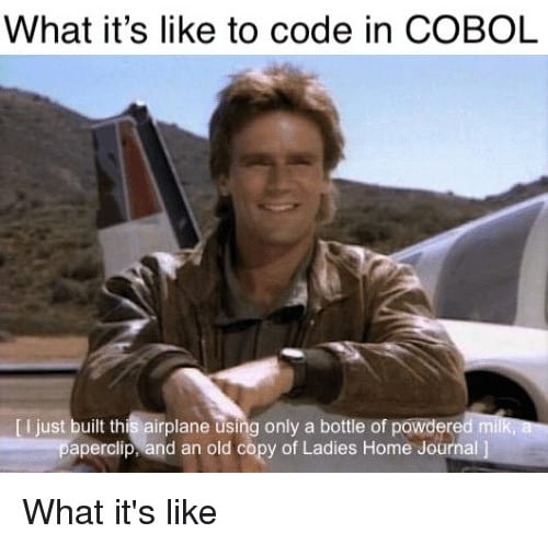 Dla niewtajemniczonych COBOL, (ang. COmmon Business Oriented Language) to język programowania stworzony z głównym przeznaczeniem do prac programistycznych w dziedzinach ekonomii i biznesu.