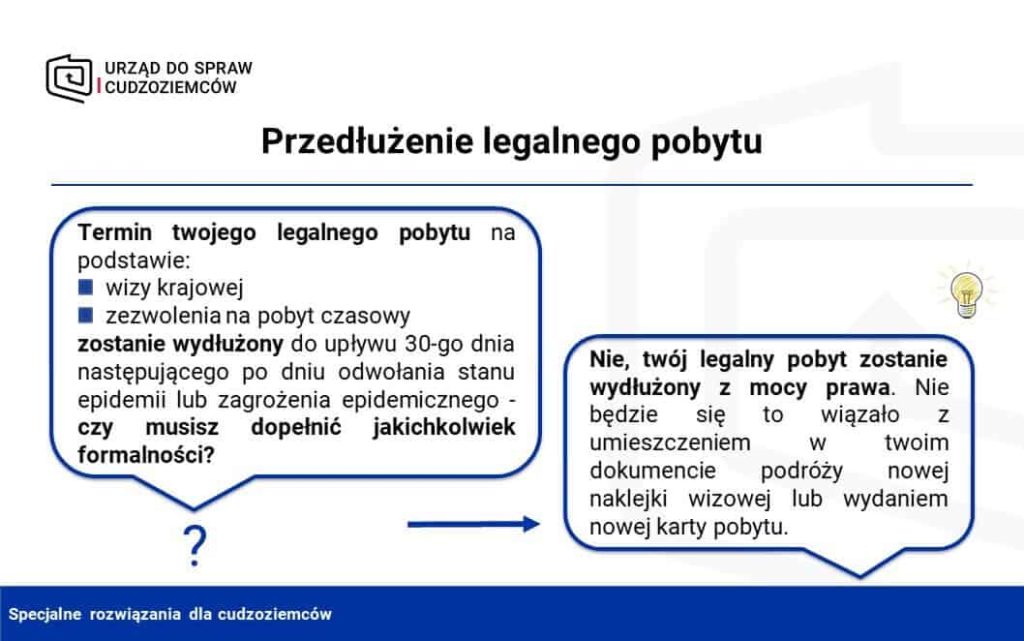 Ci którzy mają wizę krajową lub pozwolenie na pobyt czasowy, kończący się w okresie stanu epidemicznego mogą być spokojni do 30 dni od zniesienia tego stanu.